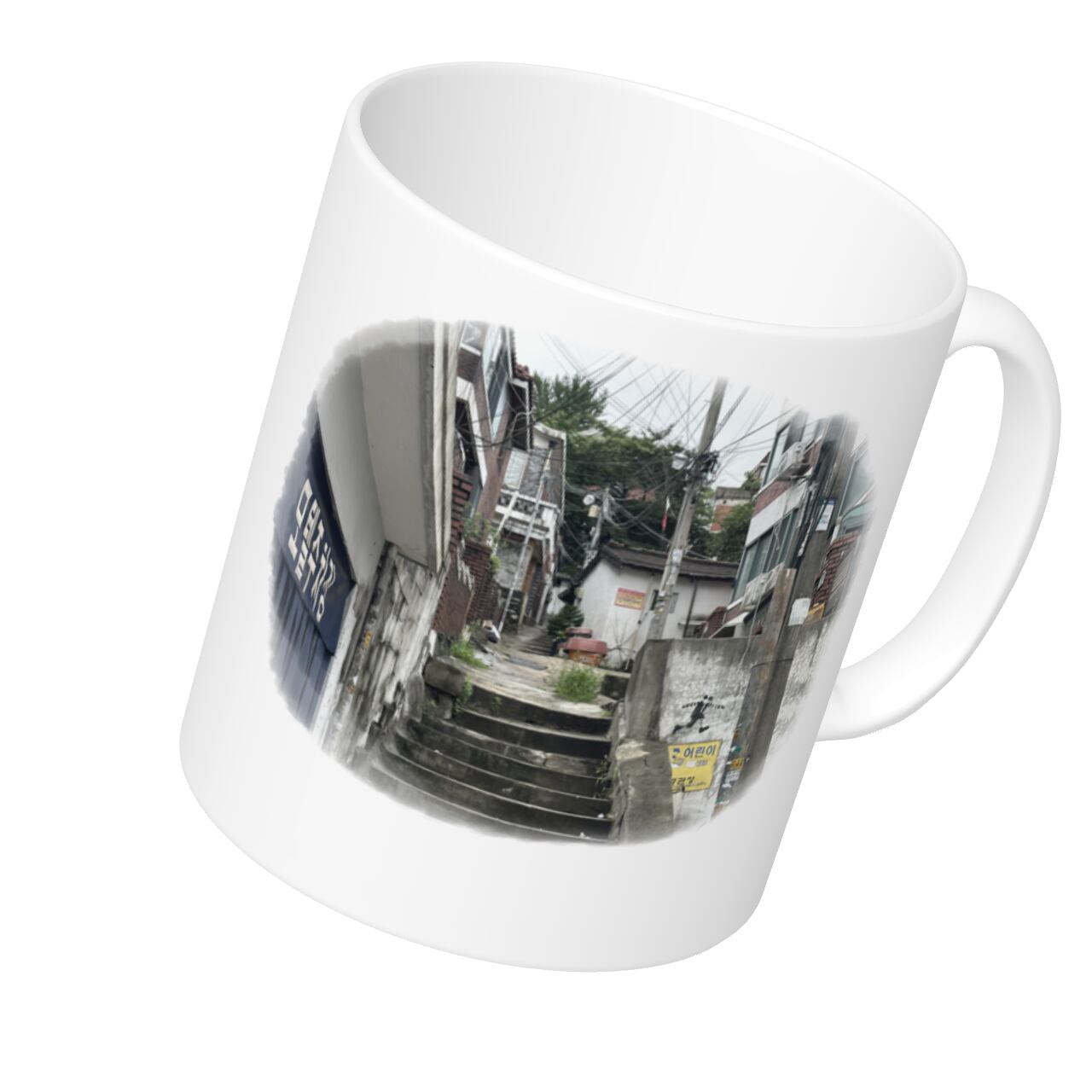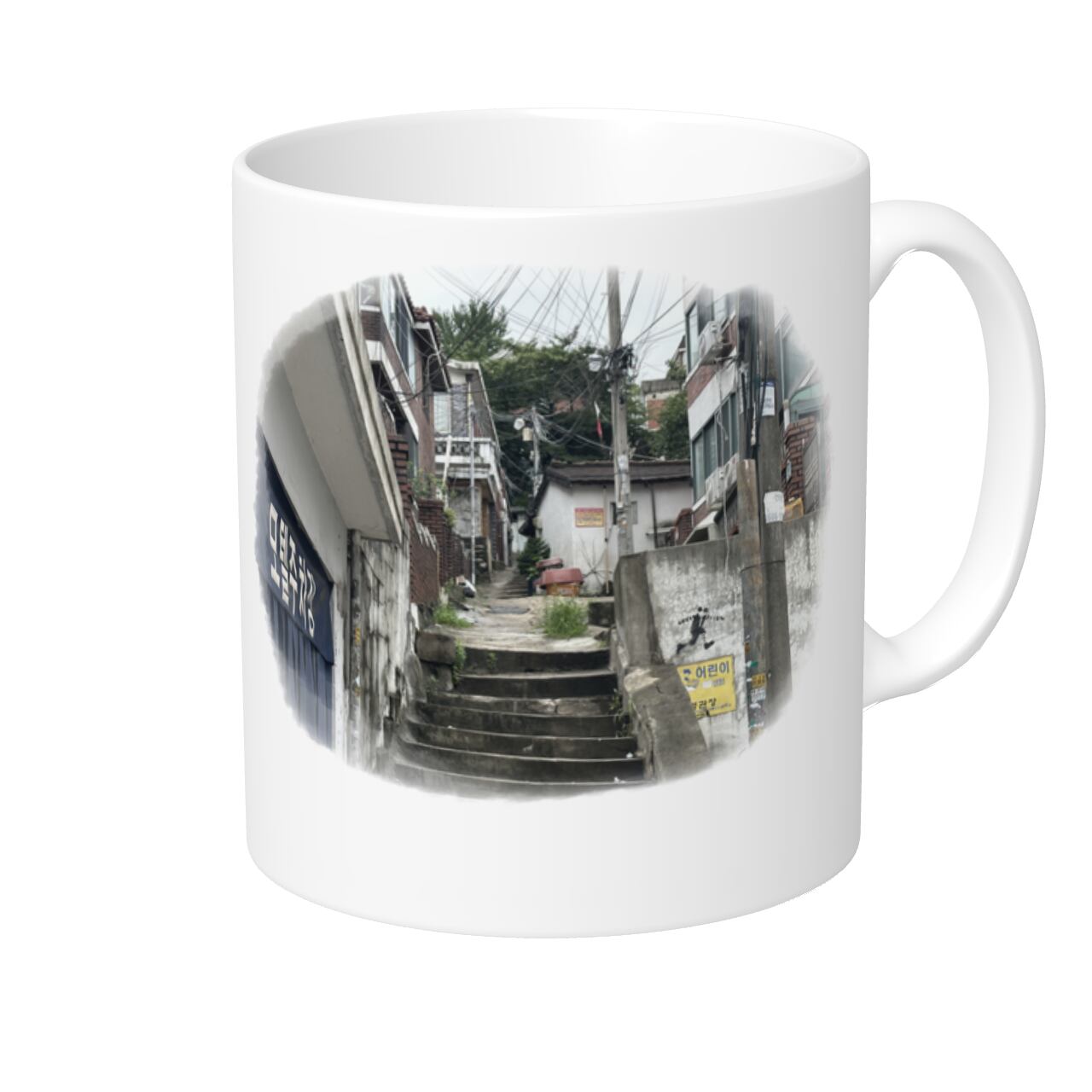 このマグカップには、ソウルの路地の風景が描かれています。美しい彩りとデザインで、お茶やコーヒーの時間が一層楽しくなりますよ。くつろいだ空間にゆったりと寄り添う、ソウルの情緒溢れる風景が心を癒してくれます。